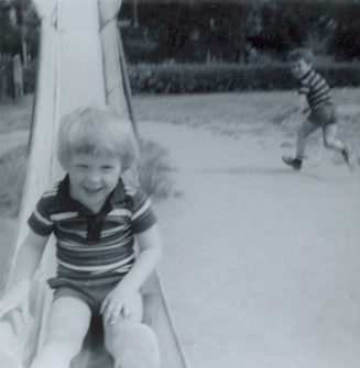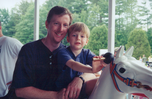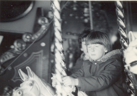 Leo and Henry on merry go round Point Pleasant NJ June 1999 |