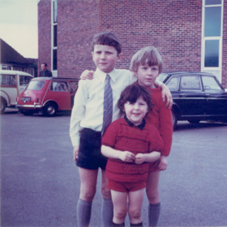 Leo and kids by railing Clacton Pier UK Sep 2000