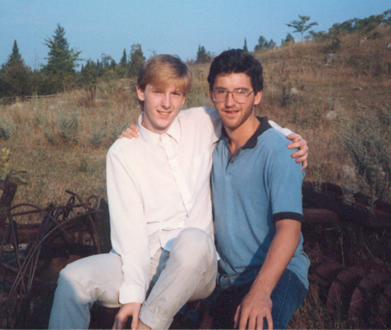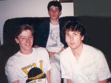 Nick Leo and Greg outside Sigma Chi frat 16 Nov 1986 |