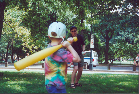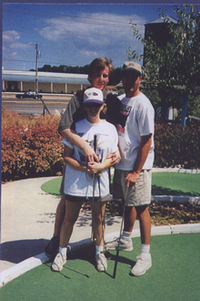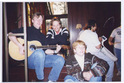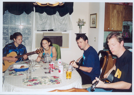 Leo jamming with Greg Amy and Lauren Sep 2002 |