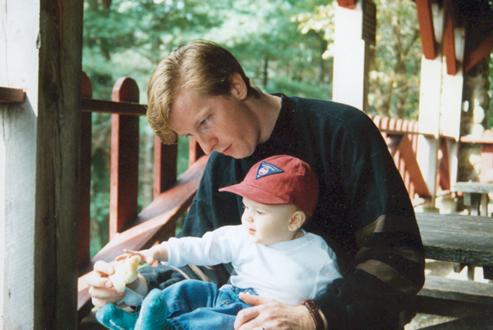 Greg and Leo at Ridgedale Road Xmas 2002 |